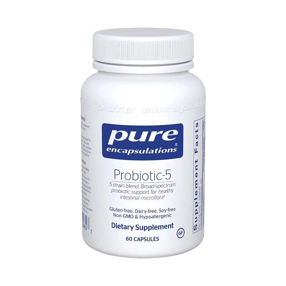 Probiotic-5 offers 10 billion colony forming units (CFU) of beneficial bacteria to promote G.I. tract health and comfort as well as immune cell function and overall health. Probiotic-5 helps maintain intestinal flora, support healthy yeast balance and promote G.I. comfort.